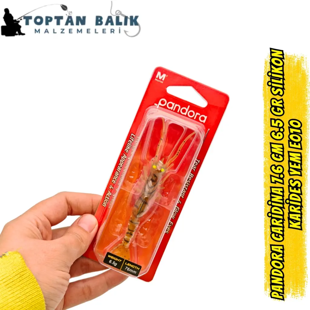 Pandora Caridina, su altındaki duruşu ve hareketli kuyruk aksiyonu ile karides avlayan tüm balıkların bir numaralı hedefidir. Çevre dostu TPE silikon materyali, hem esneklik hem de yüksek dayanıklılık sunar. Dengeli zoka sistemi, yemin dipte dik durmasını sağlayarak gerçekçi bir savunma pozisyonu yaratır. Üzerindeki çizgiler ve gözler UV boya ile güçlendirilmiş olup, derin sularda veya düşük ışıkta bile avcı balıkların dikkatini üzerine çeker.